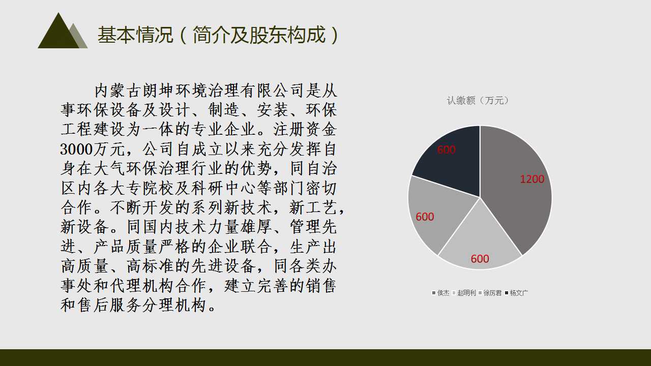 本期路演人是内蒙古朗坤环境治理有限公司董事长侯杰,其清晰的介绍了地质封存方法处理尾气排放项目的基本情况、项目特点及优势、融资计划及投资效益等内容,并且对路演吧中投资人提出的问题进行详细解答。本期特邀点评嘉宾:解嵘--内蒙古中盈资产管理公司总经理;丁利红——长江证券呼和浩特营业部营销总监;张孝——北京君衡厚德投资咨询有限公司董事长。