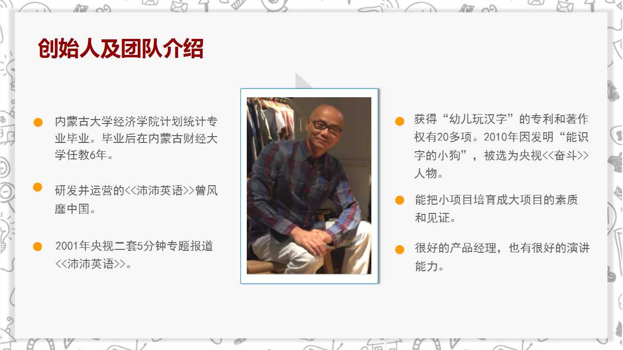 ?公司有优秀的团队成员,曾创立了“沛沛英语”、鹿儿岛教育等品牌,获得的教育专利和著作权有40余项。