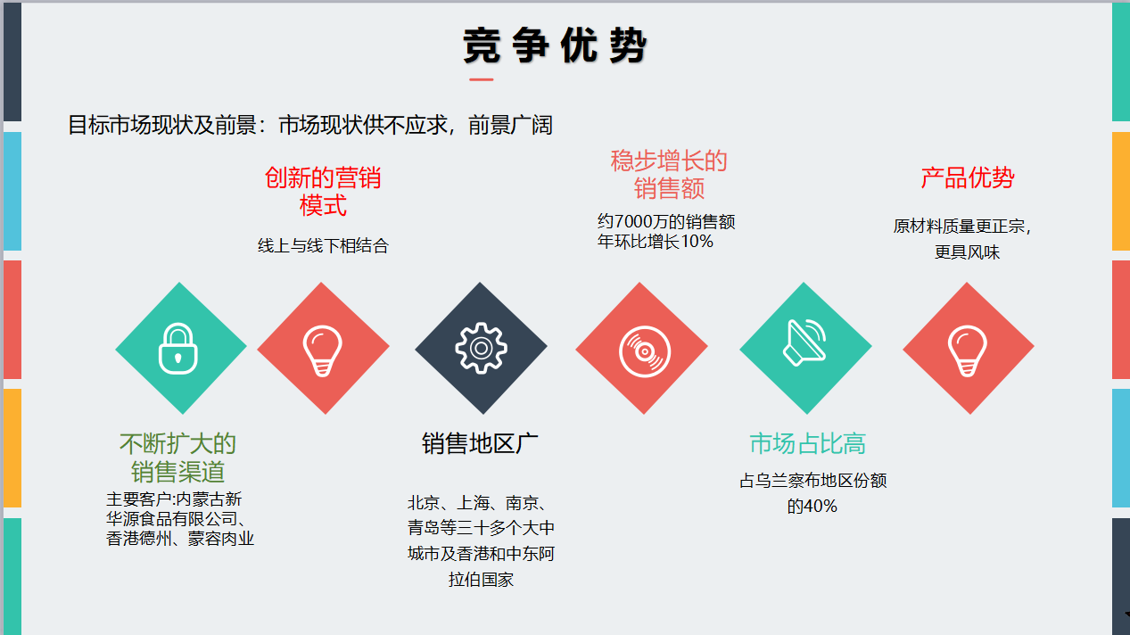 该公司已形成了以当地农牧民养殖,公司加工、销售为一体的产业链,构建了公司+基地,基地+农户的格局。多年来在帮助农牧民创收的同时,不仅提高公司盈利,也促进了地方经济的发展。