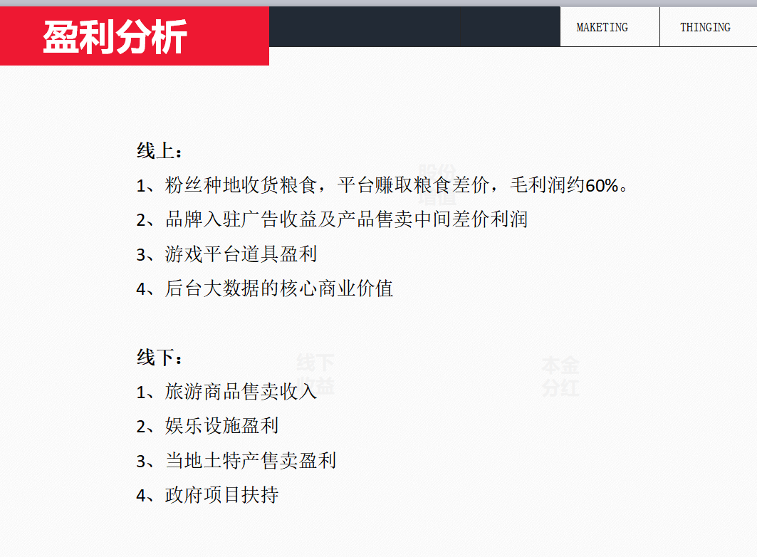 农业+互联网模式,趣味性游戏引流绿色有机食品消费者;革新农产品传统销售渠道,消费者+游戏+配送,完成食物从土地到饭桌的全过程。