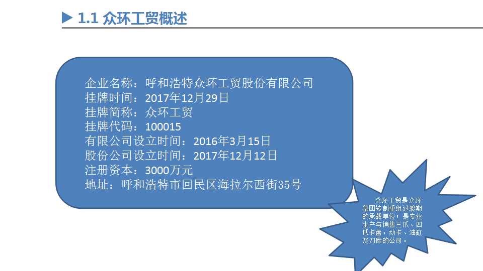 2017年12月挂牌内蒙古股权交易中心孵化板。