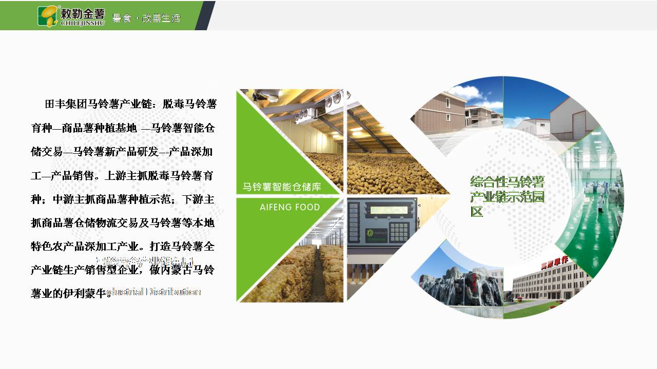 一家集马铃薯仓储物流交易、新品种开发、脱毒种薯生产、主粮化产品研发、本地特色农产品深加工以及其它农产品的加工经营为一体的综合性农业公司。