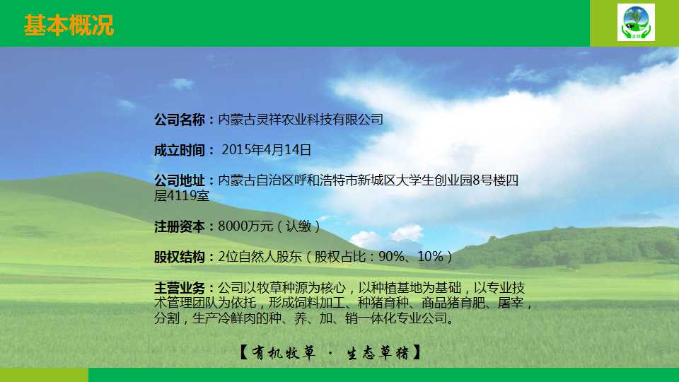 *内蒙古灵祥农业科技有限公司是一家集优质牧草种子育种、销售、种植、青贮、蛋白生物发酵饲料生产,农业开发、畜禽养殖、屠宰及肉类加工的综合性企业。