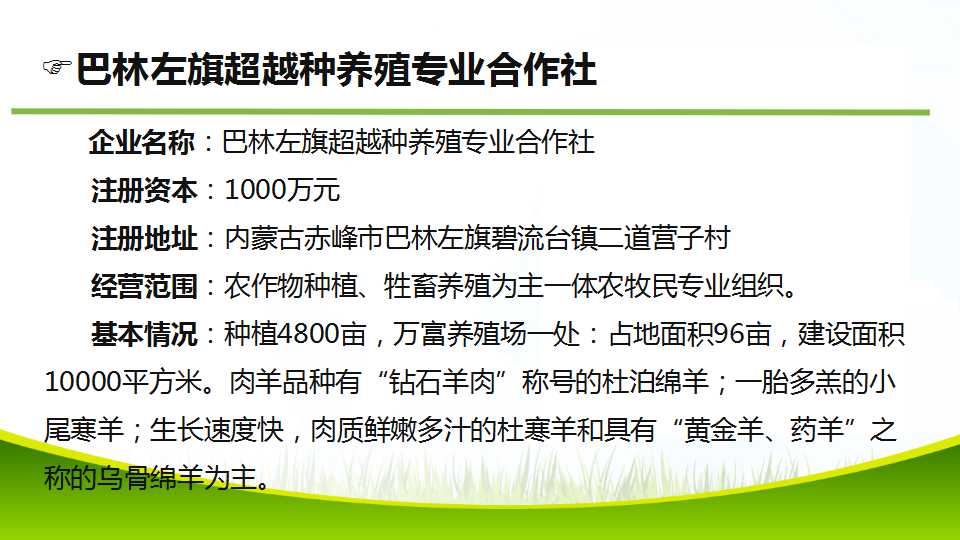 本期路演人是巴林左旗超越种养殖专业合作社总经理麻庆玉,麻总从项目简介、团队介绍、市场分析、融资计划等几方面进行了详细的介绍。本期特邀点评嘉宾有:金桥创富投资管理有限责任公司副总裁林雪峰、内蒙古蒙都羊业食品股份有限公司董事会秘书兼财务总监王云发、北京心流资本有限责任公司CFO苏征宇,三位嘉宾分别对项目未来发展方向等方面给出建议,投资人与路演人在线上深入的互动交流,各行业专家多角度表达观点,多家投资人对项目有进一步了解的意愿,路演活动成效显著。