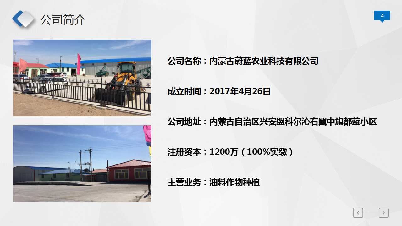 ·内蒙古蔚蓝农业科技有限公司是自治区农牧业产业化重点龙头企业,是兴安盟唯一农产品统一种植标准、统一收购、加工、销售为一体的农业产业化企业。